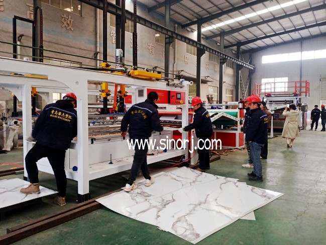 UV仿大理石板生產線工廠內試機與省內格柵板生產線發貨中同時進行